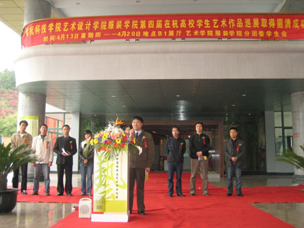 校党委副书记胡浙平、校团委副书记郑友取、艺术学院领导王筱雯、陈媛媛、屈德印,以及分团委、学工办全体老师和各在杭高校艺术学院学生会代表出席了本次开幕仪式。胡浙平副书记为本届学生艺术作品巡展致辞,并对艺术作品巡展提出了殷切期望,希望通过本次展览交流学习各高校艺术创作思维、提高艺术创作水平,营造良好的校园文化氛围,推动优良学风建设。随后全体领导一起为本次活动剪彩并仔细参观了所有参展作品。