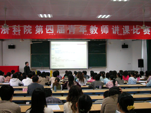 经过精心组织与筹备,由教务处、校工会、人事处联合组织的校第四届青年教师讲课比赛于4月25日在小和山校区拉开帷幕。各二级学院经层层选拔最后胜出的26位选手将参加本次比赛。比赛将通过专家评委随堂听课这一方式,根据选手在教学内容、教学能力、教学风格与特色以及多媒体课件制作与运用等多方面的表现,打出综合评价分,并最终产生浙科院第四届“十佳青年教师”。 开赛当日,有7位选手分别登台亮相,其他选手也将在近日一展风采。