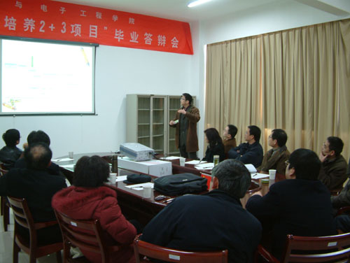 信息与电子工程学院首届“中德联合培养2+3项目”毕业答辩会日前在信息学院会议室举行。这次答辩会受到了学校领导的高度重视,校党委书记徐志平、副校长龚建立以及校国际合作处、教务处、中德学院、学校办公室、党委宣传部等有关部门(学院)领导,信息学院8位教授、副教授参加了此次答辩会。信息学院赴德国汉诺威应用科技大学计算机应用专业留学的夏晓丰同学和王振同学参加了此次答辩。