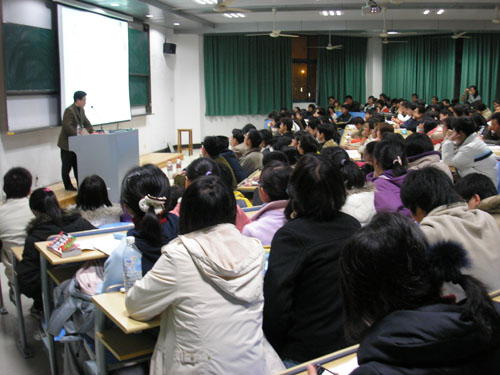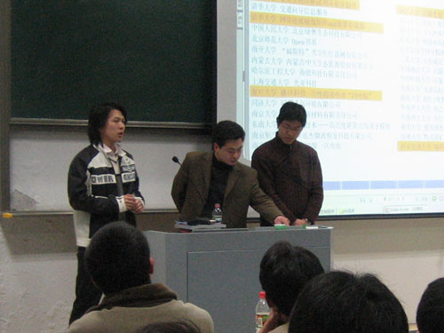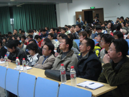 讲座中,浙江大学团委副书记吴巨慧向大家介绍了大学生创业计划竞赛的起源以及在国内的发展情况,详细说明了创业项目的选择,创业计划书的文本撰写要求、注意事项,国内大学生创业计划竞赛的评分规则等情况。曾获得全国大学生创业计划大赛金奖的浙江大学“地衣”创业团队代表郭立超同学和曾获得浙江省大学生创业计划大赛特等奖的浙江大学“深蓝”创业团队代表陈艺超同学展示了他们的创业计划参赛作品,博得了全场听众热烈地掌声。他们还就如何寻找项目、如何组建团队、项目可行性分析、团队项目管理、文本写作培训等五个方面的问题谈了自己的看法。讲座结束后,浙江大学创业团队就同学们提出的相关资料的搜集、项目的独特性、选题的依据、融资的分配,财务的运转等问题回答了现场观众的提问。