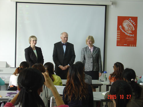 10月26日至10月28日,德国奥登堡/东弗里斯兰/威廉港应用科学大学校长弗里德里希 (Prof. Dr.Friedrichs) 教授和副校长格茨纳(Prof. Gruetzner)教授一行四人来米乐官网访问。来访期间,分别与米乐官网校长杜卫教授、副校长龚建立教授以及外语学院、生化学院、机械学院、电气学院、经管学院举行了会谈。双方就深化两校合作交流,特别是就旅游德语、生物工程、食品工程领域的学生联合培养及机械、经济、自动化领域共同举办国际化专业进行了深入、细致的探讨,并初步达成了一致意见。奥登堡/东弗里斯兰/威廉港应用科学大学校长一行四人还观摩了德语专业的德语教学,参观了德国文化区,与计划明年初赴德国进行语言实习的德语专业学生进行了交谈。由于德语专业学生的突出表现,奥登堡/东弗里斯兰/威廉港应用科学大学决定将招收实习生数从两名增加到四名。