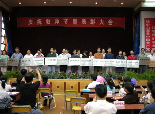 会上,副院长龚建立教授宣读了学校有关表彰先进集体和个人的决定。校领导为获表彰的集体和个人颁发荣誉证书。校领导还为今年已满30年教龄的姜继圣、庄永成两位教师颁发了纪念证书。