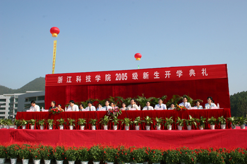 上午8点30分,2005级新生开学典礼在庄严的国歌声中举行。校党政班子成员徐志平、杜卫、胡浙平、龚建立、蒋家新、陈根芳、鲁凤、黄丰平出席典礼。校党委书记徐志平主持了今天的开学典礼。有关职能部门和各二级学院负责人也在主席台就座。