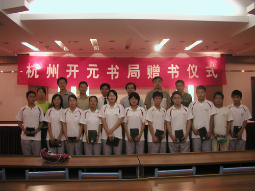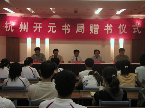 赠书仪式在小和山校区宾馆大会议室举行,校党委副书记胡浙平、杭州开元书局总经理熊盛新、教务处和学生处负责人出席了仪式,15位接受赠书的学生以及部分辅导员、班主任参加了仪式。