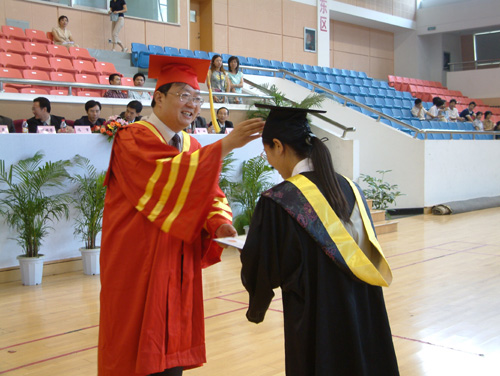 省优秀毕业生、2005届机械学院毕业生陈晋燕代表全体毕业生在毕业典礼上发言。她回顾了在校4年的美好生活,感谢培养他们4年的母校和师长,祝福母校明天更美好,祝福全体毕业生明天更美好。