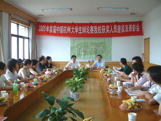 近日,学校在学院路校区召开表彰会,隆重表彰在“中国杭州大学生辩论赛”夺冠的米乐官网学生辩论队队员和指导教师。院长杜卫、院党委副书记胡浙平出席表彰会并为获奖师生颁奖。