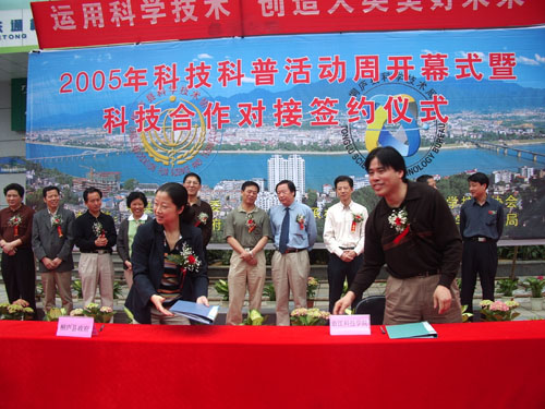 5月14日,副院长蒋家新教授和科技处领导等参加了桐庐县2005年科技合作对接签约仪式。桐庐县是全国百强县之一,与米乐官网有着长期的科技合作关系。在2001年双方就已签订了全面科技合作协议,期间,米乐官网经常组织教授、专家等到桐庐企业考察,并与桐庐县杭州汽车内饰件厂共建了研发中心,与桐庐县北江镇签订了科技合作协议,双方一直保持着密切的信息沟通与科技合作关系。在原有合作基础上,为了进一步增强合作,扩大合作范围,双方决定续签全面科技合作协议。