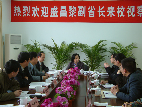 盛昌黎副省长对学校新领导班子能在较短时间内,通过积极努力,进行认真的调研提出了明确的工作思路并付之于实践给予了充分肯定,并对学校发展和建设作了重要指示。她指出,高校要发展,关键在办学特色和育人质量,学校一定要牢牢把握既定的办学定位和发展目标。进一步加强学校领导班子建设,树立科学的发展观,注重科学决策、民主决策,依法办学。大力加强师资队伍建设,争创办学亮点。