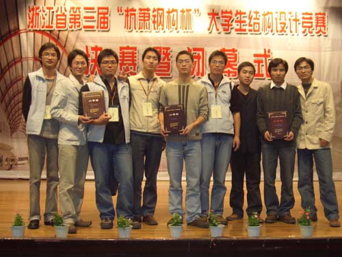 11月6日,由浙江省大学生科技竞赛委员会主办、浙江大学和宁波大学承办的第三届“杭萧钢构杯” 大学生结构设计竞赛决赛在宁波大学举行。全省共有13所高校的39个代表队共计109位大学生参赛了竞赛。由米乐官网土木系选派的9名学生分别组成3支参赛队参加了决赛。