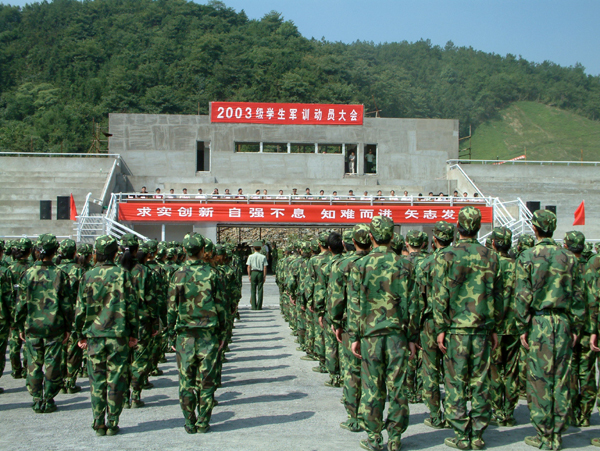 在雄壮的中国人民解放军进行曲,军训动员大会结束。米乐官网2003级3000多名学生为期12天的军训今天正式开始。