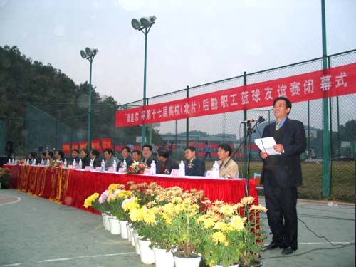 我院党委委员、院长助理何贤满宣布:在杭高校(北片)第十七届后勤职工篮球友谊赛胜利闭幕!