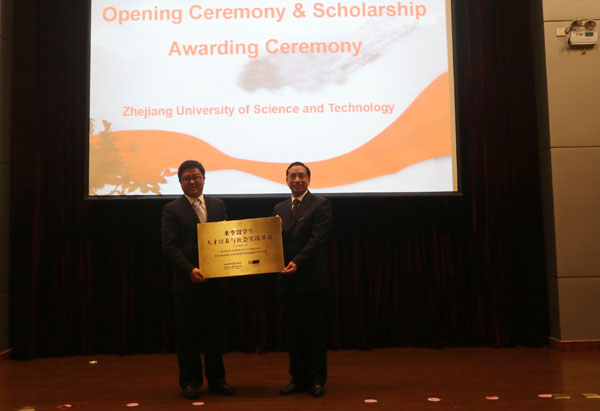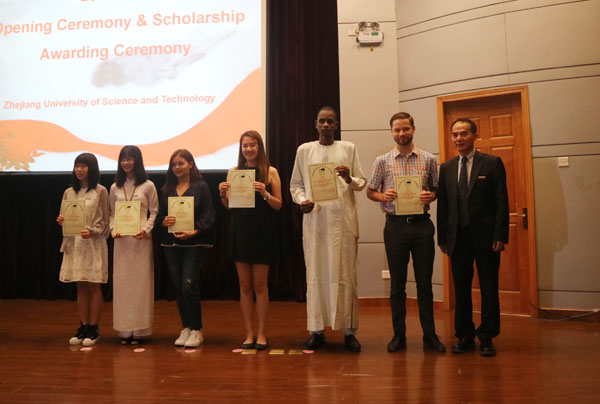 与会师长为获得中国政府奖学金、孔子学院奖学金、浙江省政府奖学金、校优秀学历生奖学金、校单项奖学金、校优秀新生奖学金等荣誉学生颁发了获奖证书。