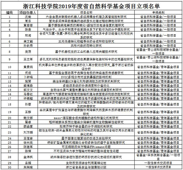 近日,浙江省科学技术厅、浙江省自然科学基金委员会发布“关于2019年度浙江省自然科学基金拟资助项目公示的通知”,米乐官网共有30个项目获浙江省自然科学基金项目立项,较去年有明显提升。