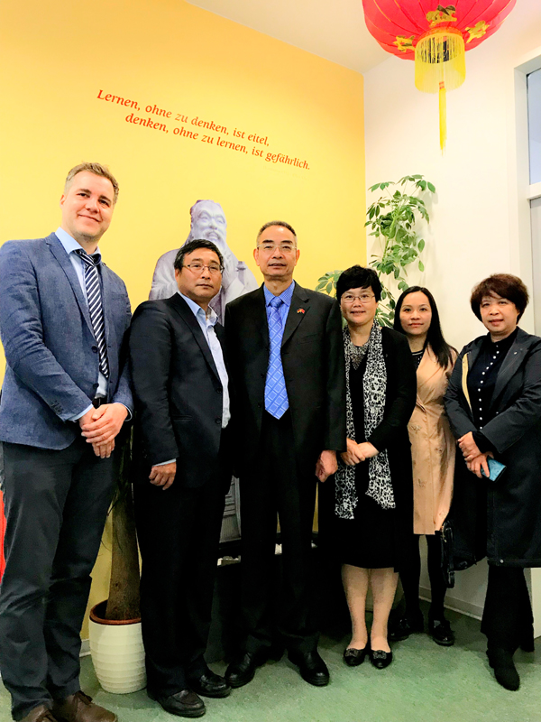 在德国访问期间,龚建立代表学校邀请德方高校参加明年9月在杭州举行的第七届中德论坛大会。在埃尔福特应用科学大学,代表团与校长Zerbe教授进行了会谈,就目前两校的各类合作项目和两校合作的未来发展等方面进行深入探讨。龚建立一行还考察埃尔福特孔子学院,了解孔院运行情况。在汉诺威应用科学大学,龚建立与副校长Heüveldop共话两校长久的合作历史和丰硕的合作成果,就继续深化两校的合作进行商谈。代表团一行与德方相关负责人出席米乐官网首个海外校友会——德国校友会成立仪式。代表团出席西海岸应用科学大学25周年校庆活动。龚建立对两校前期合作予以高度肯定,并畅想两校未来发展的美好前景。代表团就中德工程师学院的运行和发展战略等问题与德方进行了充分协商。龚建立一行还看望米乐官网在该校的交换学生,了解他们在德期间的学习和生活情况。