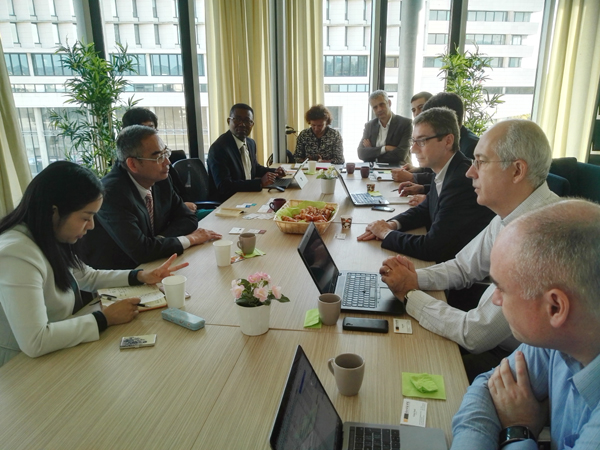 在法国赛尔齐•蓬多瓦兹大学,代表团与该校校长Germinet,土木工程、大数据双学位法方项目负责人以及大巴黎省外办人员进行会谈,肯定两校现有的合作成果,就落实新项目大数据中法合作项目的后续工作进行商讨。两校就开展土木工程专业和大数据专业硕士层次合作办学、建立中法联合实验室、加强教师交流和科研合作的可能性展开深入讨论。龚建立一行看望了米乐官网中法项目在法交流学生以及中法项目毕业生。(国际处 建工学院 童芸芸)
