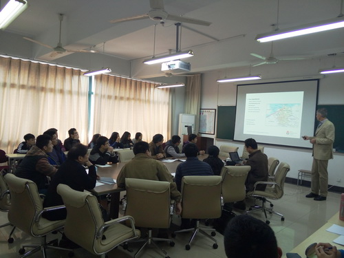 2015年3月26日来自德国贝克应用科技大学Günther Schall教授给建工学院师生作了题为“Development of Steel Construction for Wind Engery Mills in Germany”的学术报告,主要内容为风力发电设备的钢结构建设,介绍了与此相关的风力发电历史,德国规范,常用风力发电结构现状与发展,生动地讲述了力学概念和演示了有限元计算。会议在欢快和谐的气氛中度过,与会的教师学生兴趣浓厚,报告结束后与Schall教授展开了亲切热烈的讨论。