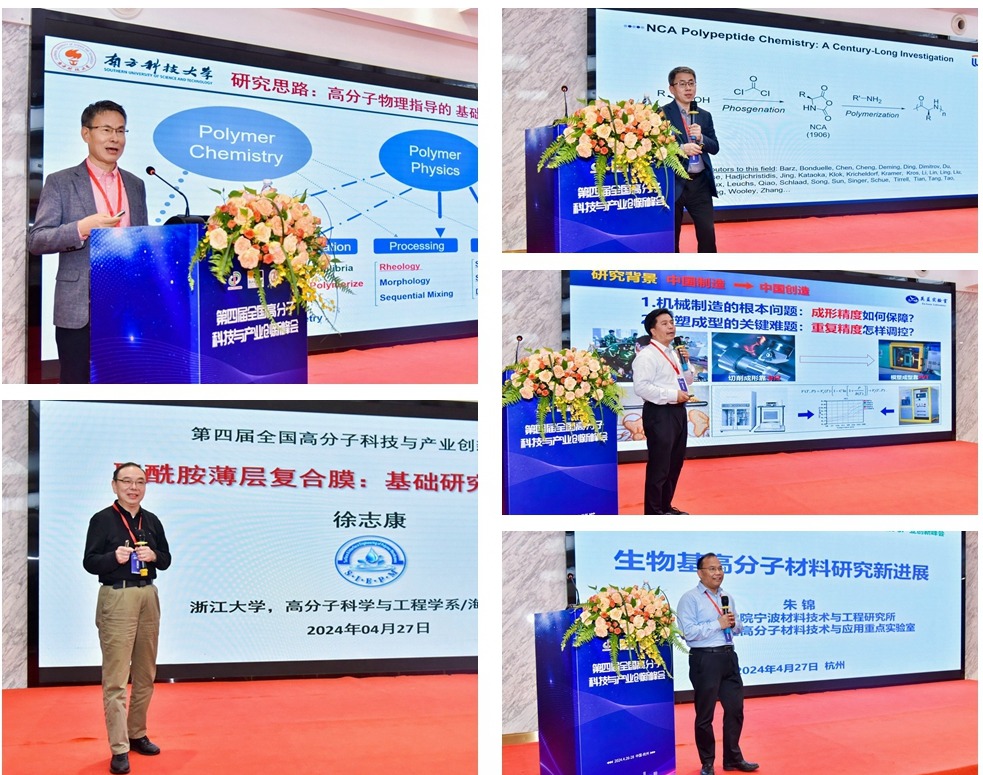 南方科技大学陈忠仁教授、浙江大学徐志康教授、西湖大学程建军教授、北京化工大学杨卫民教授、中国科学院宁波所朱锦研究员,分别以《高分子物理指导下的化工新材料研究--从催化体系、聚合反应到加工工艺、性能调控》《聚酰胺薄层复合分离膜:基础研究与产业》《多肽材料的可控合成和生物学应用》《高分子材料成型加工与低碳绿色智能制造技术创新研究进展》和《生物基高分子材料研究新进展》为主题作大会邀请报告。与会人员围绕高分子材料合成、结构与性能、高分子材料成型加工、通用高分子高性能化与功能化、聚合物基合金材料、功能材料与复合材料、生物医用高分子材料、废旧高分子材料绿色再生与高值化利用、高分子材料产业化与工程装备技术以及高分子教学/工程认证等9个主题进行了71场精彩的主题报告,介绍了高分子领域的最新科技成果和产业发展。生物与化学工程学院路胜利教授受邀作报告。