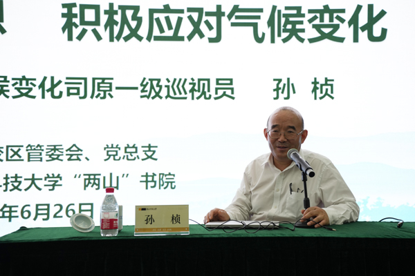 6月26日,米乐mile体育官网“两山”讲坛第五讲在安吉校区举办,生态环境部应对气候变化司原一级巡视员孙桢受邀作了题为《学习习近平生态文明思想,积极应对气候变化》的报告。安吉校区相关负责人,安吉县生态环境局相关负责人、校区全体党员、教职工代表及学生代表参加了本次讲坛。