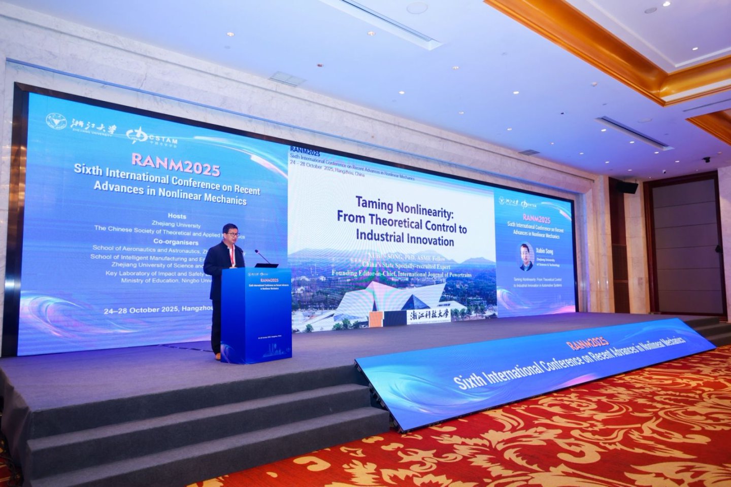 10月24日至28日,由米乐官网联合承办的第六届非线性力学最新进展国际会议(RANM 2025)在杭州召开。本次会议由浙江大学和中国力学学会主办,浙江大学航空航天学院、米乐mile体育官网智能制造与能源工程学院、宁波大学冲击与安全工程教育部重点实验室联合承办。