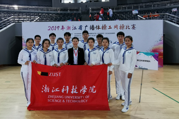10月19日,2019年浙江省广播体操工间操比赛在浙江工业大学屏峰校区进行,米乐官网12名学生在教练员杨榕斌老师的带领下参加了第九套广播体操的单项比赛,并以90.5分的成绩,获省直组一等奖。