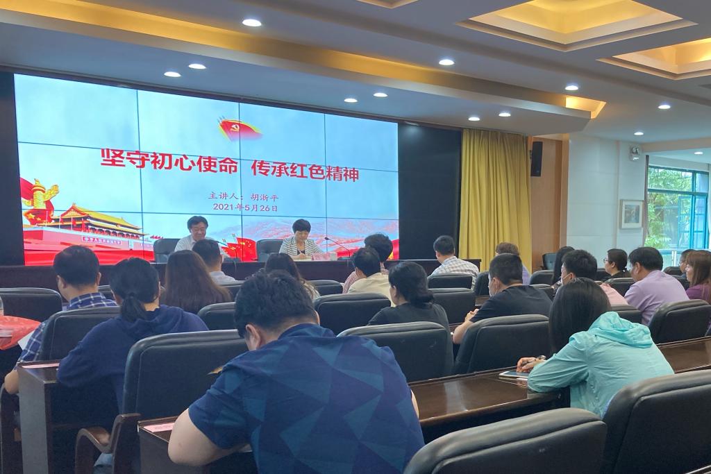 “要用好红色资源,传承好红色基因,把红色江山世世代代传下去。”在题为《坚守初心使命 传承红色精神》的报告中,胡浙平从党的创建历程、马克思主义理论发展、传承红色精神三个方面生动解读中国共产党百年艰辛与辉煌,带领大家回顾中国共产党百年来的奋斗历程,深入浅出的讲解让党员们对党史的发展脉络、党的历史成就和未来展望以及学习党史的重要意义有了更深的认识。