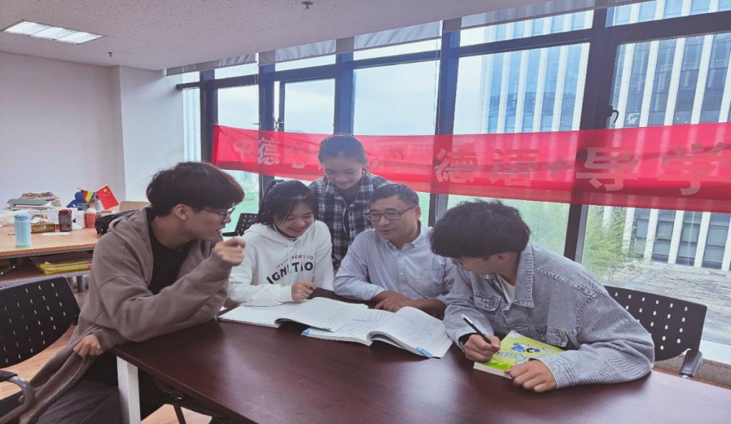 学院面向安吉校区新生开展“中德心连心”德语+导学活动,德语专业教师们为大一新生们解答德语学习疑惑和大学学习的规划问题。据悉,下一步“中德心连心”德语+导学活动将在小和山校区开展。