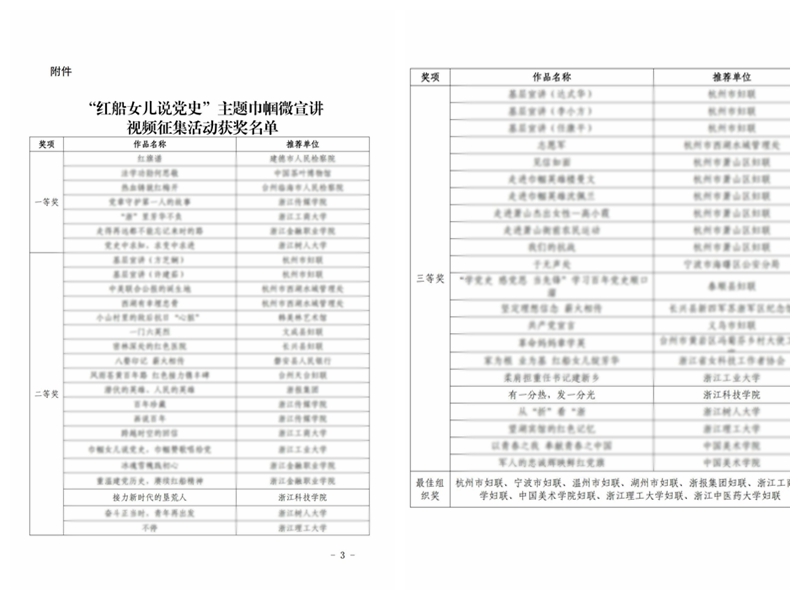 日前,省妇联公布“红船女儿说党史”主题巾帼微宣讲视频征集活动的评选结果,米乐官网选送人文学院陆雩霞作品《接力新时代的垦荒人》获二等奖、信息学院李琳璇作品《有一分热 发一份光》获三等奖。