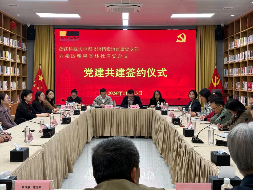 11月13日,图书馆档案馆直属党支部与西湖区翰墨香林社区党总支开展举行“党建共建”协议签约仪式,双方商定将在定向开放、资源共享、文化交流、志愿服务、党建共建等方面开展合作。