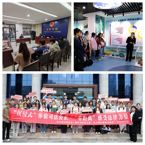 此次活动,是安吉校区廉政文化社《大学生廉洁意识与法治教育》学分制社团课程实践教学内容,该课程由校区与县检察院等单位共同联合实施。通过法院庭审旁听和检察院模拟听证,丰富学生的法律基础知识,为培养具有廉洁素养、法治意识和社会责任感的新时代大学生发挥积极作用。(安吉校区 贾晓龙)