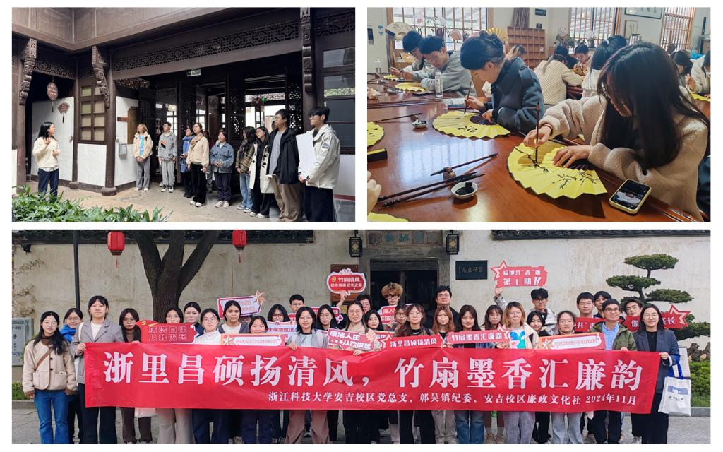 近日,安吉校区党总支联合鄣吴镇纪委开展“浙里昌硕扬清风 竹扇墨香汇廉韵”廉洁教育活动,组织学生来到吴昌硕故居、昌硕美术馆、制扇非遗工坊,寻访印章中的廉洁元素,体验竹扇制作技艺,深入感受安吉地方廉洁文化。