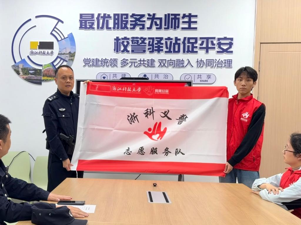 11月6日,学校在校警驿站举行“浙科义警”志愿服务队授旗仪式。留下派出所,学校安全保卫部、人工智能学院等单位负责人出席仪式,与学生志愿者代表共同见证这一时刻。