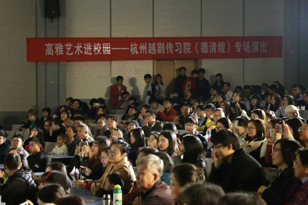 11月13日晚,高雅艺术进校园——杭州越剧传习院越剧专场演出《德清嫂》在闻理园A4—122上演。五百多名观众欣赏了这场高水平的演出。