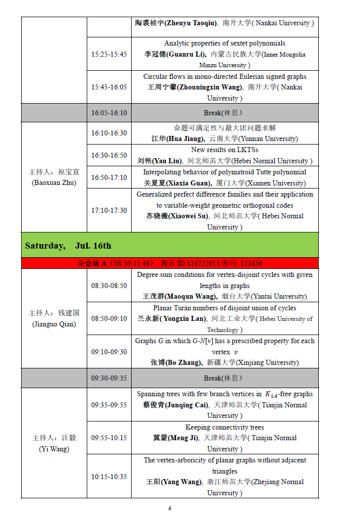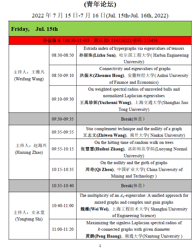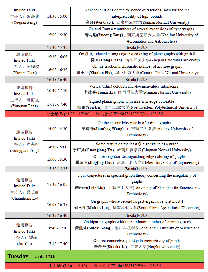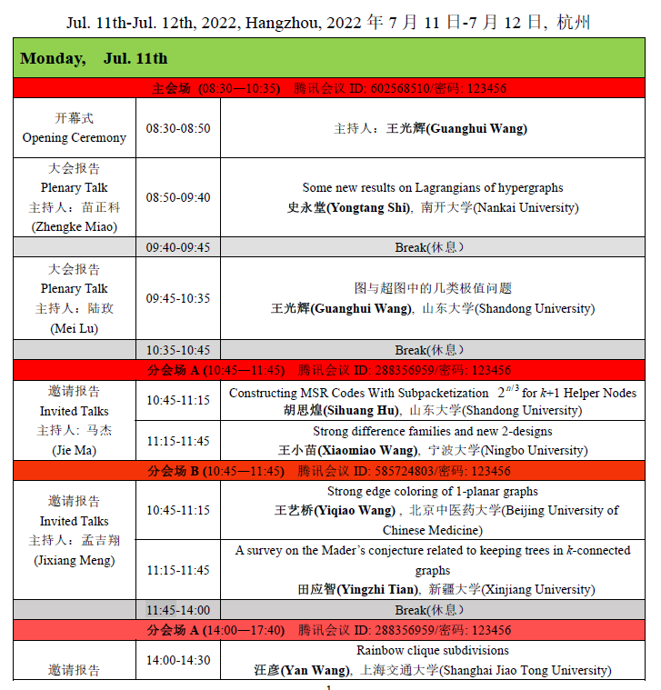 (1)第一阶段(2022年7月11日—12日):大会报告和邀请报告